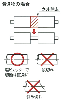 - 巻き物の場合は約100mmカット除去してください。