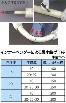 - 曲げ加工は管の座くつ防止のため、必ずインナーベンダーをご使用ください