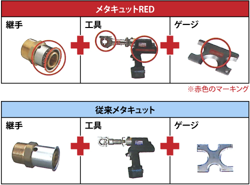 メタキュットRED継手、メタキュットRED専用工具、メタキュットRED専用ゲージであることを確認してください。