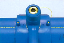 インジケーターにより融着部の検査を行います。インジケーターが左右とも継手表面より隆起していることを確認してください。